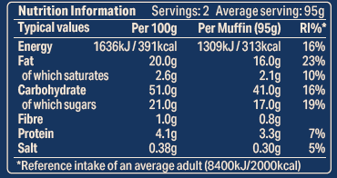 Caster Sugar, Egg, Vegetable Oil: Rapeseed Oil, Sunflower Oil; Blueberries (12%), Rice Flour, Potato Starch, Maize Flour, Pineapple, Tapioca Starch, Humectant: Vegetable Glycerol; Water, Rice Starch, Maize Starch, Concentrated Fruit Juice: Grape; Dried Egg, Raising Agents: Disodium Diphosphate, Potassium Hydrogen Carbonate; Emulsifiers: Mono- and Di-glycerides of Fatty Acids, Sodium Stearoyl-2-Lactylate, Polyglycerol Esters of Fatty Acids; Dried Egg White, Acidity Regulator: Citric Acid; Flavouring, Sugar, Preservatives: Potassium Sorbate, Calcium Propionate; Stabiliser: Xanthan Gum.